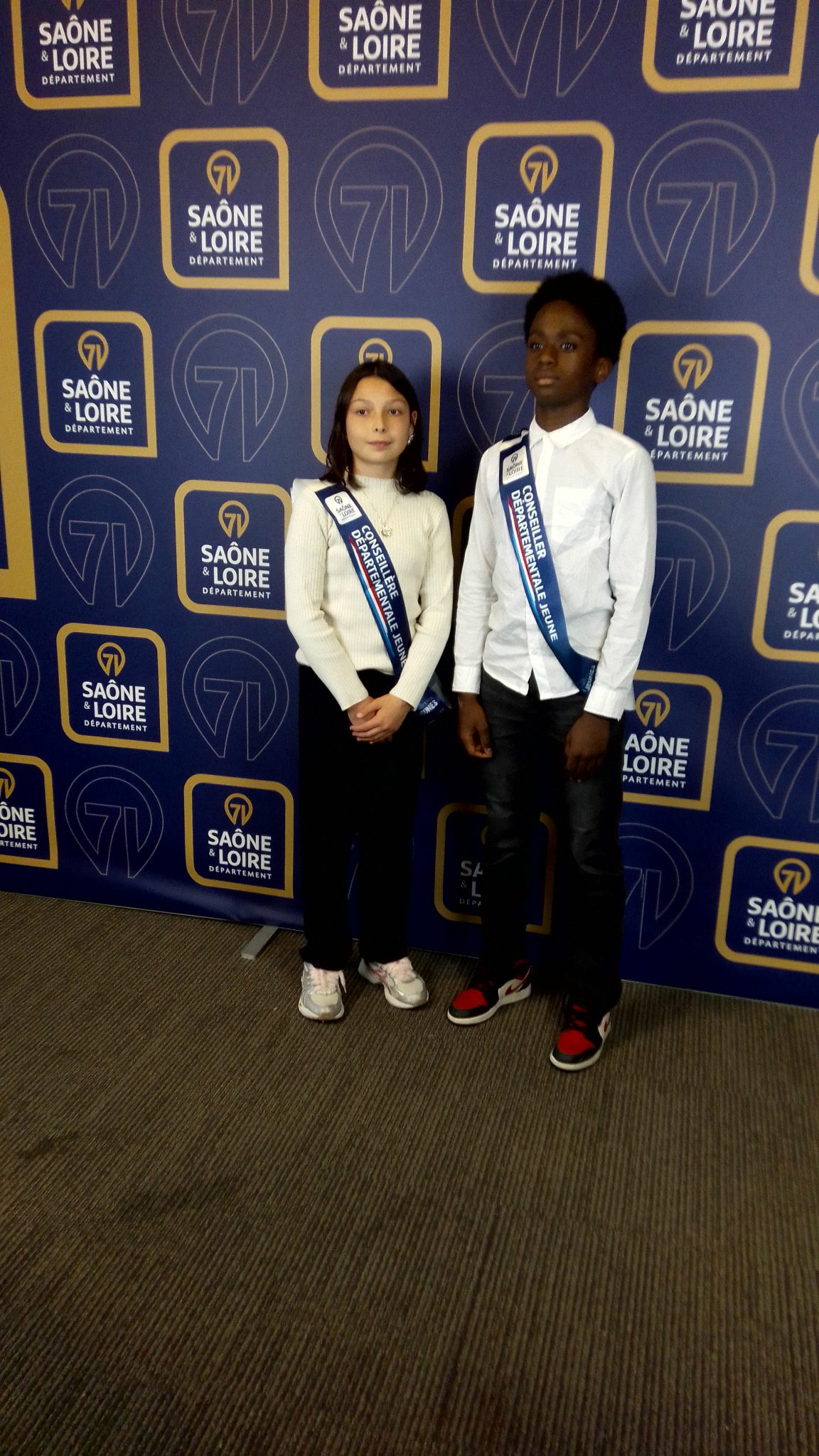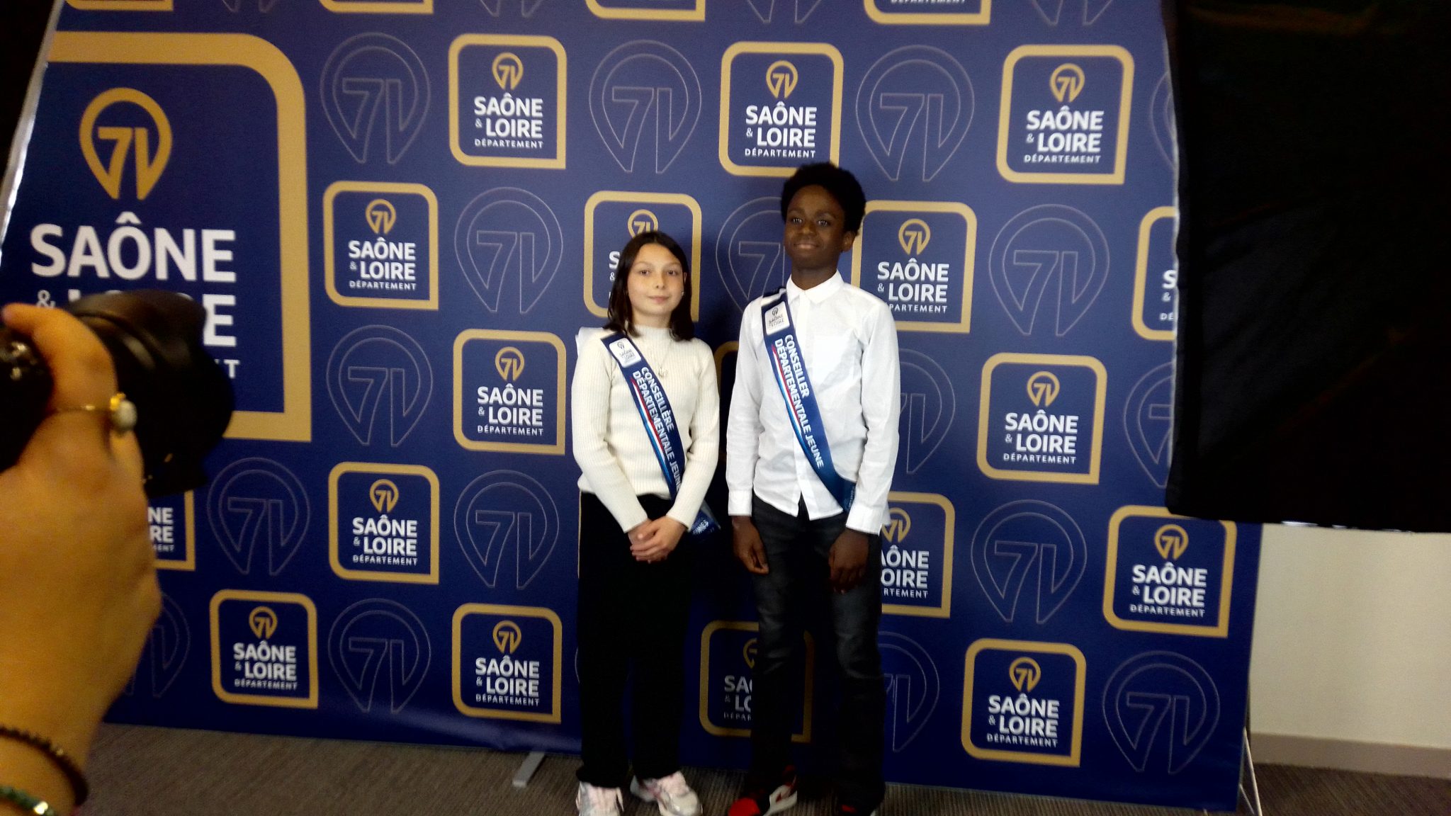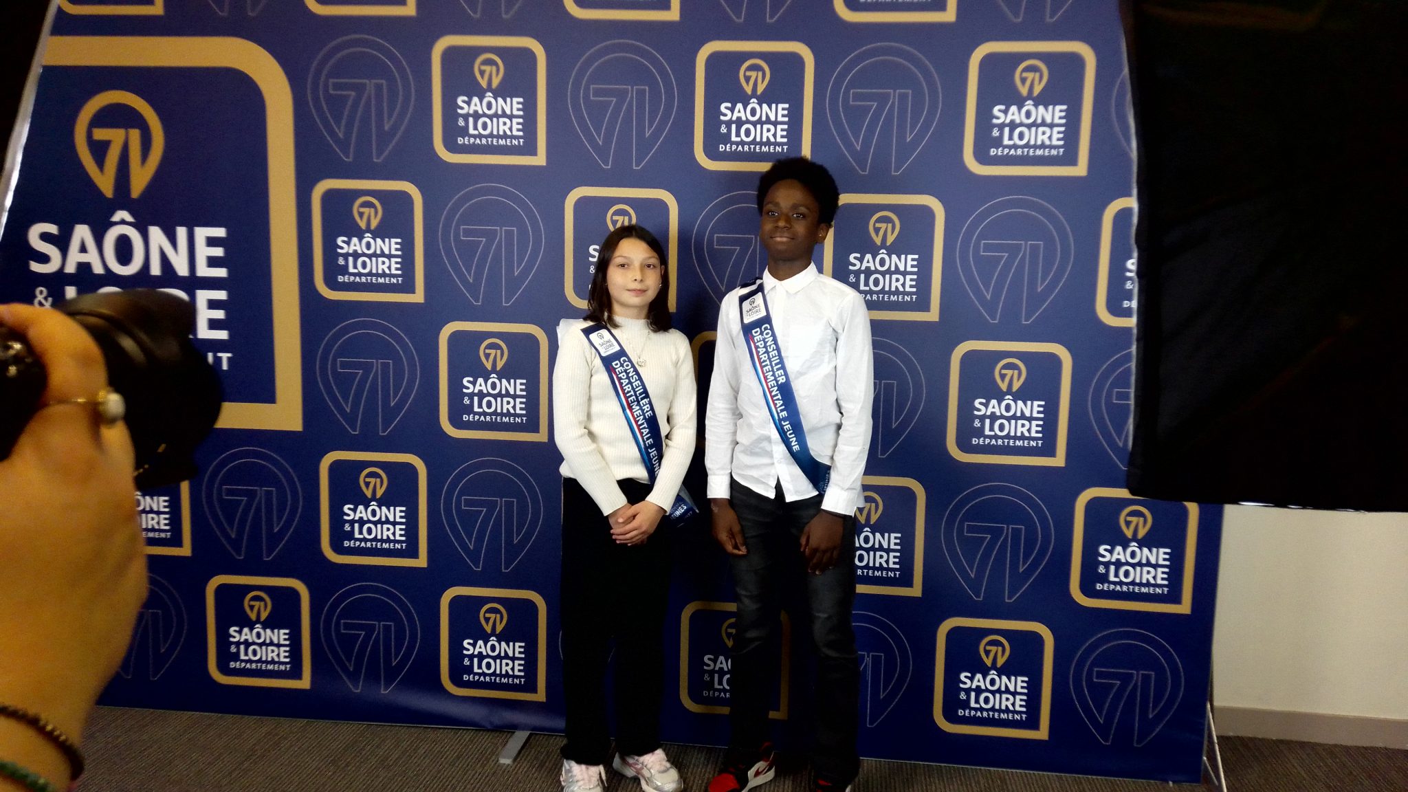 Après leur élection début octobre sur le thème « Un collège pour tous », Camille et Tarfaya ont pris leurs fonctions officiellement lundi 24 novembre, dans l’hémicycle de Conseil départemental. Remise des écharpes, découverte du fonctionnement du Conseil départemental, du Conseil départemental Jeunes, premiers échanges, et … c’est parti pour un nouveau mandat !