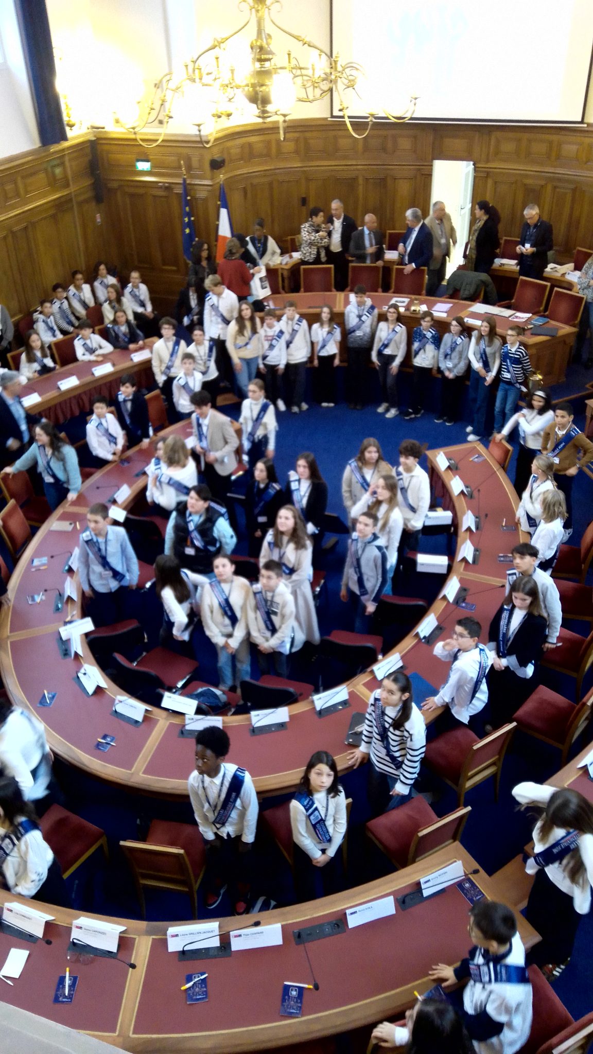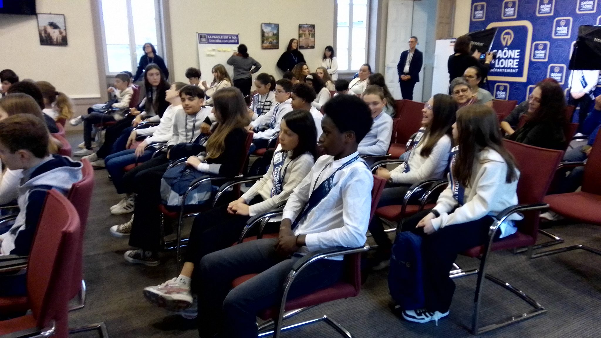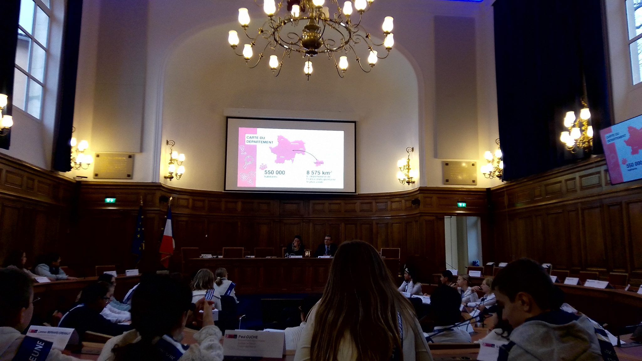 Après leur élection début octobre sur le thème « Un collège pour tous », Camille et Tarfaya ont pris leurs fonctions officiellement lundi 24 novembre, dans l’hémicycle de Conseil départemental. Remise des écharpes, découverte du fonctionnement du Conseil départemental, du Conseil départemental Jeunes, premiers échanges, et … c’est parti pour un nouveau mandat !