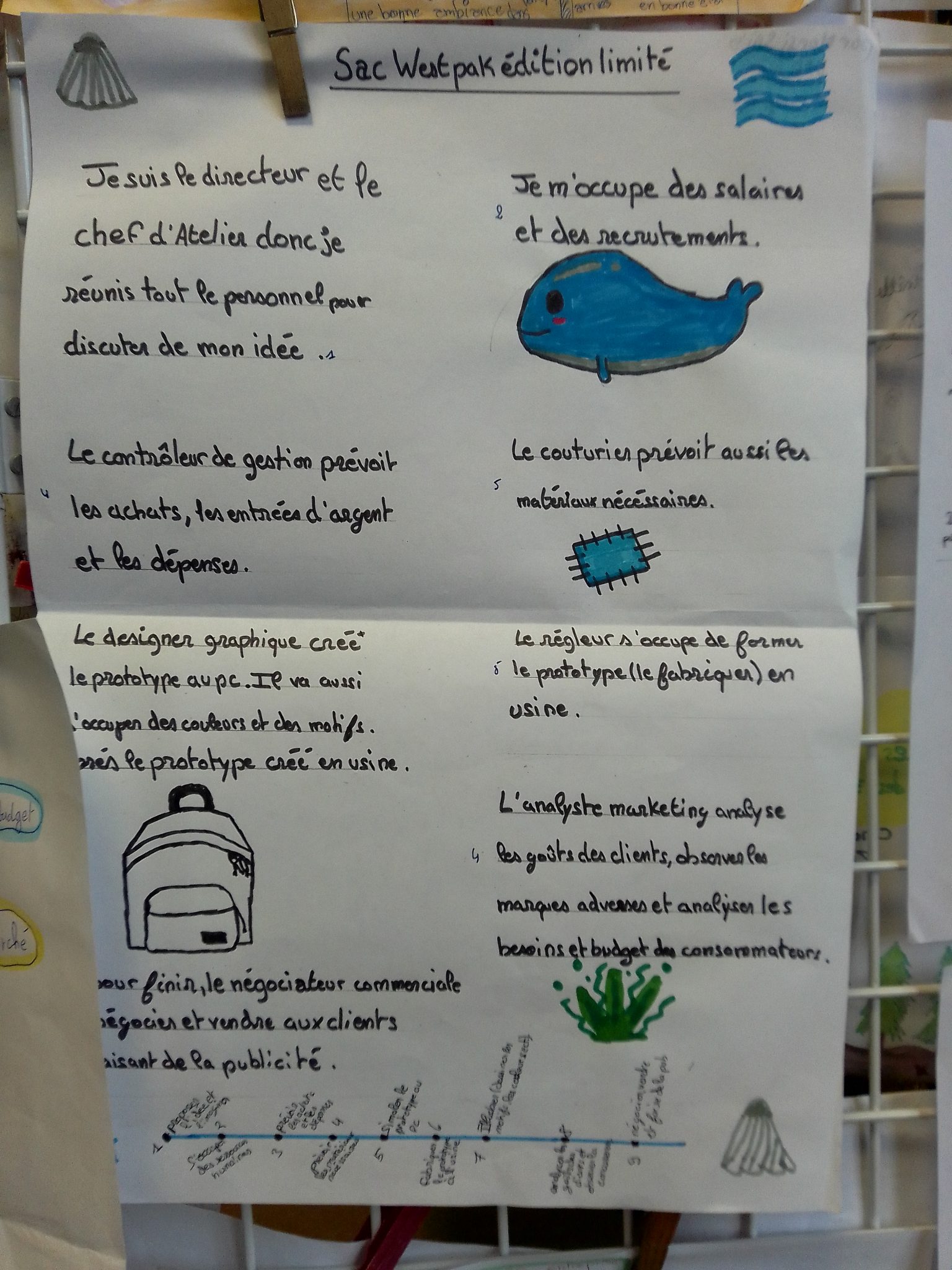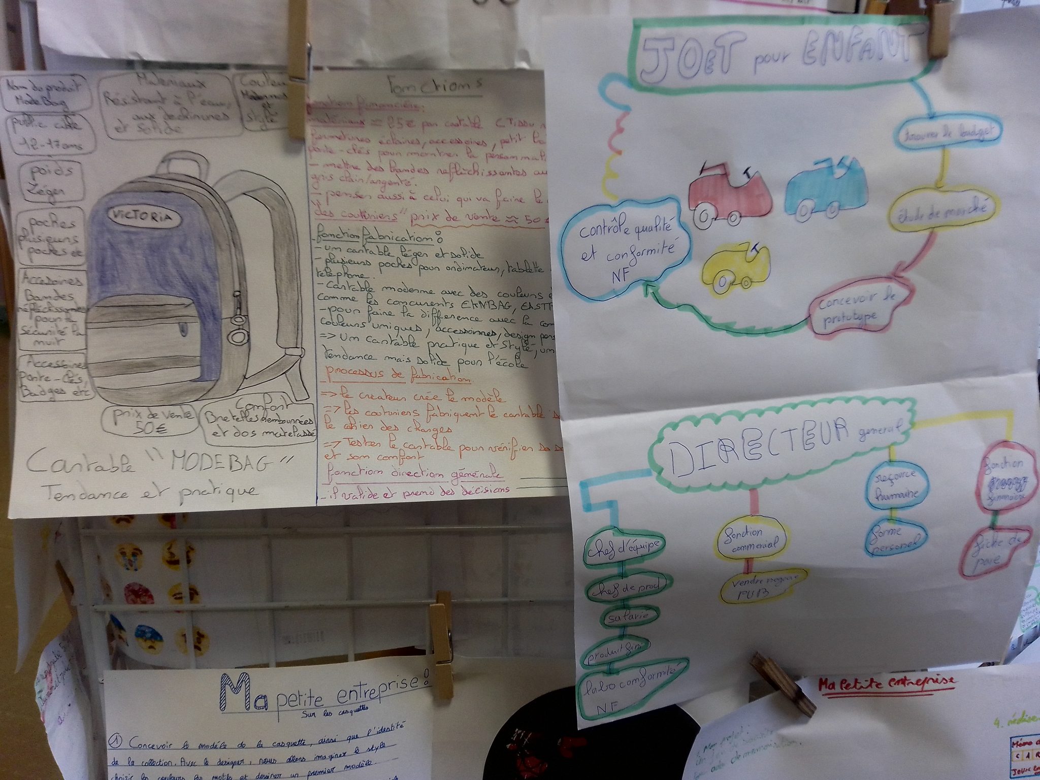 Dans le cadre du cours d’info-doc et du Plan Avenir (ex-Parcours Avenir) sur l’orientation et les métiers, les 5e ont réfléchi aux métiers d’une entreprise de la direction à la commercialisation, en passant par la conception, la fabrication, le marketing, le pôle financier…
